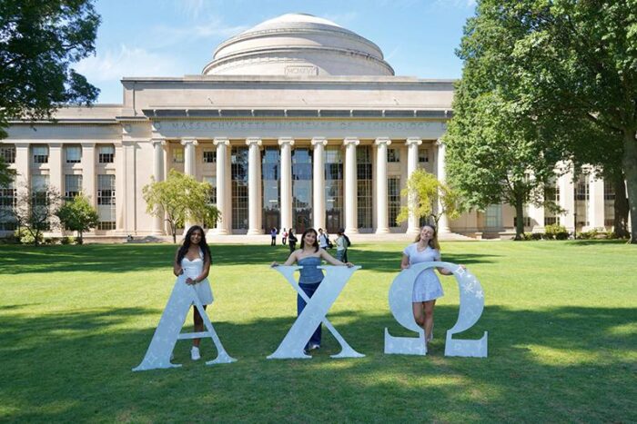Kanias has also formed lasting relationships through her sorority, Alpha Chi Omega (AXO), founded in 1885 at DePauw University. The Theta Omicron Chapter of AXO was founded 100 years later at MIT with the motto Real.Strong.Women. This year, Kanias serves as the chapter’s president. Learning about AXO during an orientation for international students, she says, “It seemed like a perfect opportunity for me. I’m used to having a massive family at home, and it was nice to join an even bigger community!”